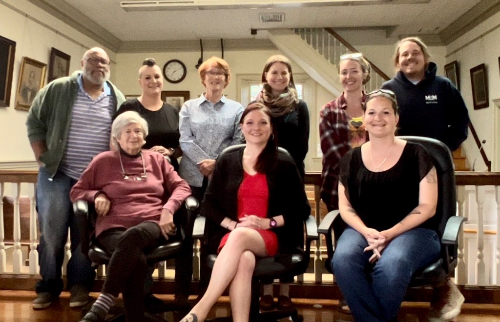 Standing from left: Terry Dixon (Gospel Coordinator), Casey Pisarek (Vice Chairperson/Vendor Coordinator), Sharon Frye (MMD Headquarters), Caitlin Ledford (Treasurer/Advertising & Marketing Coordinator), Morgan Hudgins (Member at Large), Jeff Schultz (Car Show Coordinator).