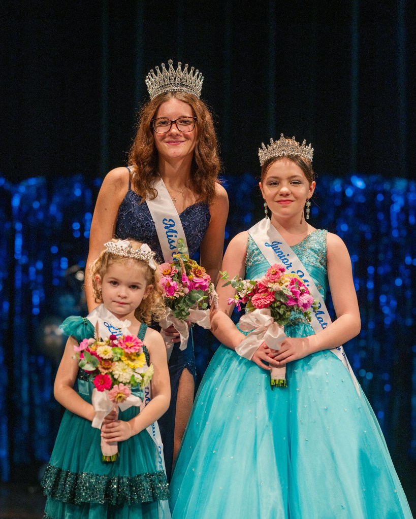 Little Miss Mathews Royal Court 2025 starting bottom left, Scarlett Roahrig Little Miss Mathews 2025, Ada Barnes Junior Miss Mathews 2025, and Hannah McBurney Miss Mathews 2025